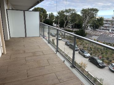 Просторная 3-комнатная квартира (72 м²) на 6-м этаже с видом на море. Включает прихожую, гостиную, американскую кухню, балкон, 2 спальни, ванную с душем и туалетом, а также отдельный туалет. В нескольких шагах от пляжей и Променад-дез-Англе.